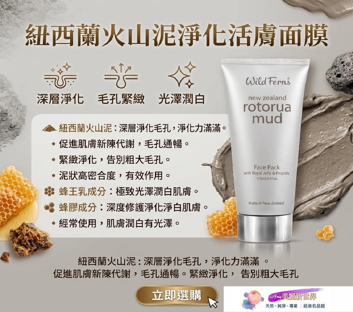 紐西蘭Rotorua火山泥淨化活膚面膜175ml(含蜂王乳蜂膠)