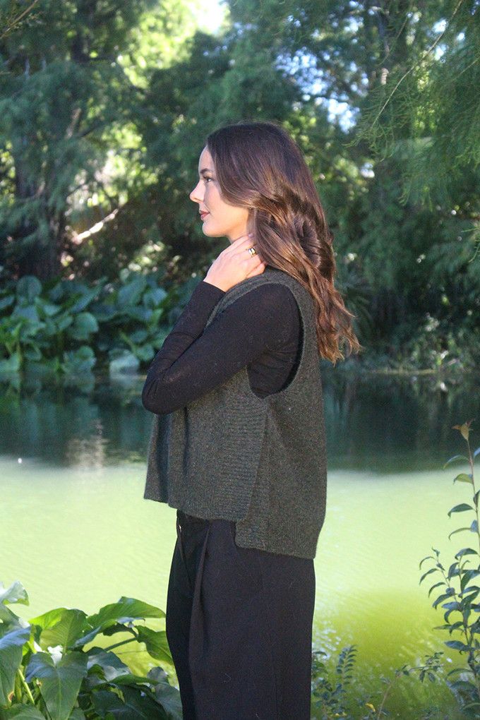 英文MOSS苔蘚綠,特殊設計:前短後長,側開(詳最下方圖示)不同於一般背心喔~高保溫、輕巧、不易起毛球、奢華質感、柔軟,高級3D技術WholeGarment立體編織,無車縫穿著感!紐西蘭貂毛羊毛精品LOTHLORIAN,保暖必備羊毛背心,不穿胖胖不穿厚重也能很溫暖!